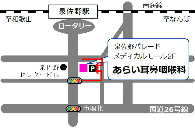 あらい耳鼻咽喉科 〒598-0007 泉佐野市上町3-3-18 メディカルモール2F TEL.072-462-3387